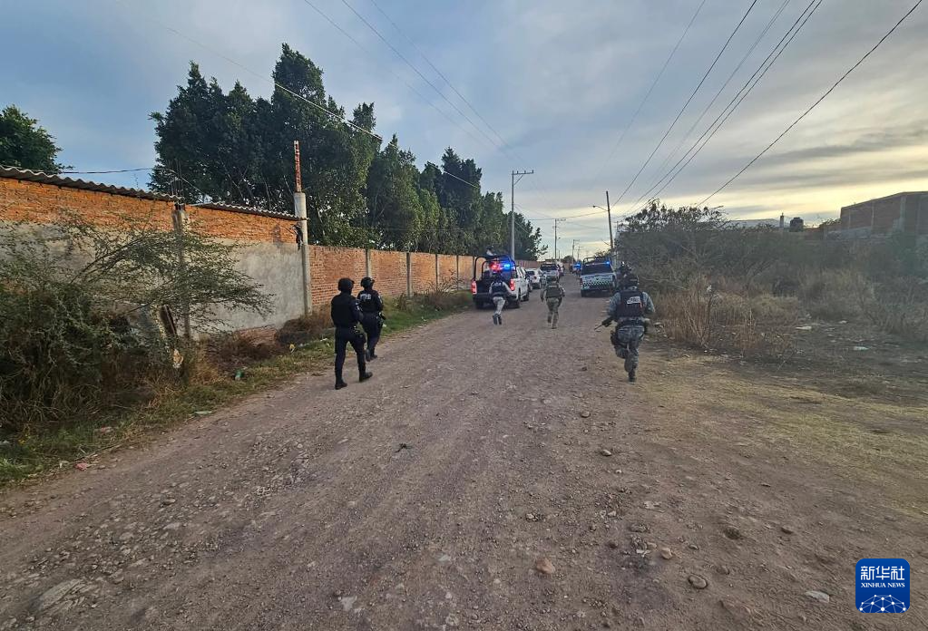 1月25日,在墨西哥瓜纳华托州萨拉曼卡市,安全人员在发生枪击的足球场周边巡逻。
