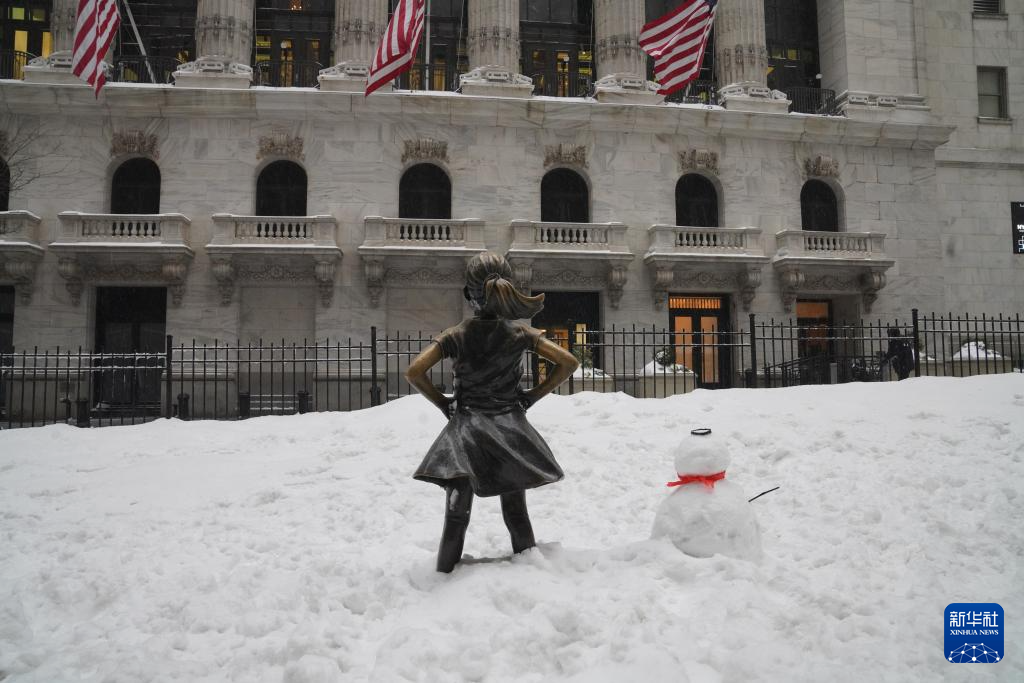 这是1月25日拍摄的美国纽约证券交易所前的积雪。