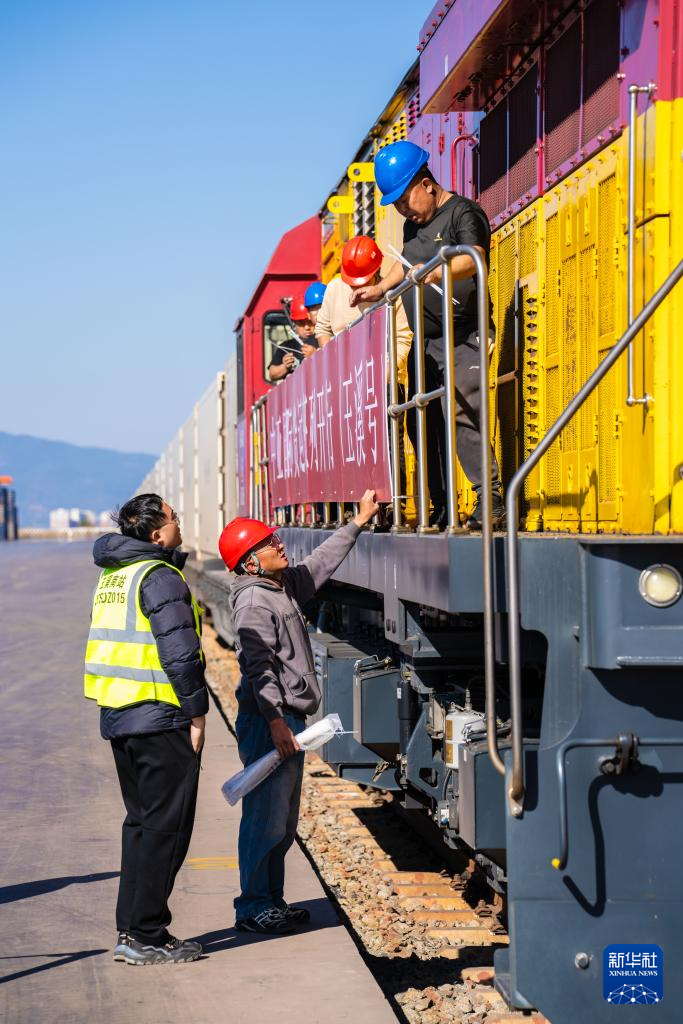 1月26日,工作人员在云南玉溪研和站为中老铁路中亚国际货运班列发车做准备。