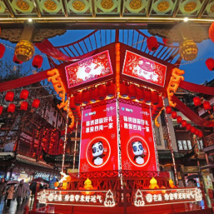 1月26日在豫园商城黄金广场拍摄的巨型走马灯。