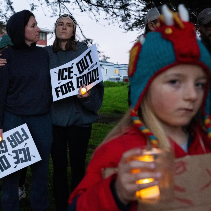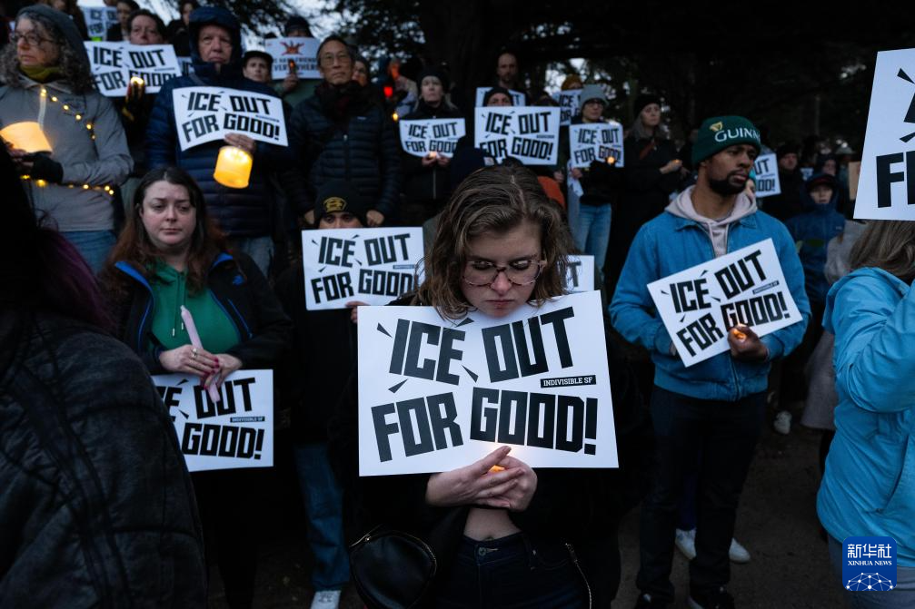 1月25日,在美国加利福尼亚州旧金山,人们为亚历克斯·普雷蒂举行烛光悼念活动。