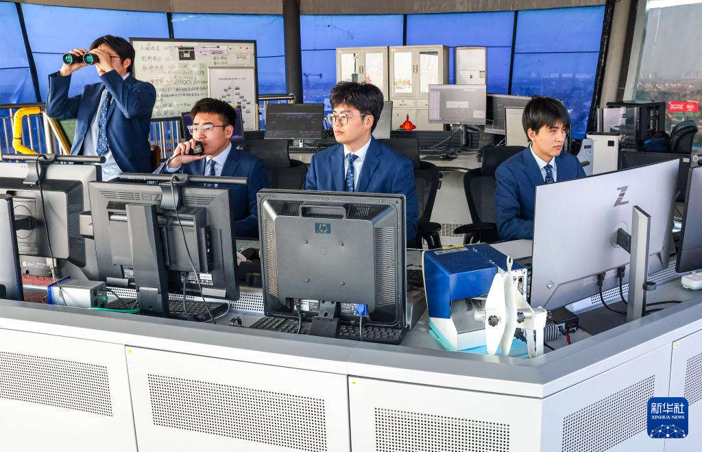 1月28日,管制员在扬州泰州国际机场塔台指挥飞机起降。