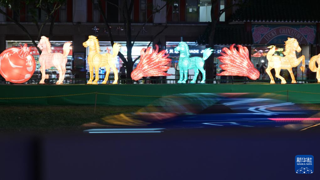 当日,新加坡牛车水春节灯饰正式亮起。