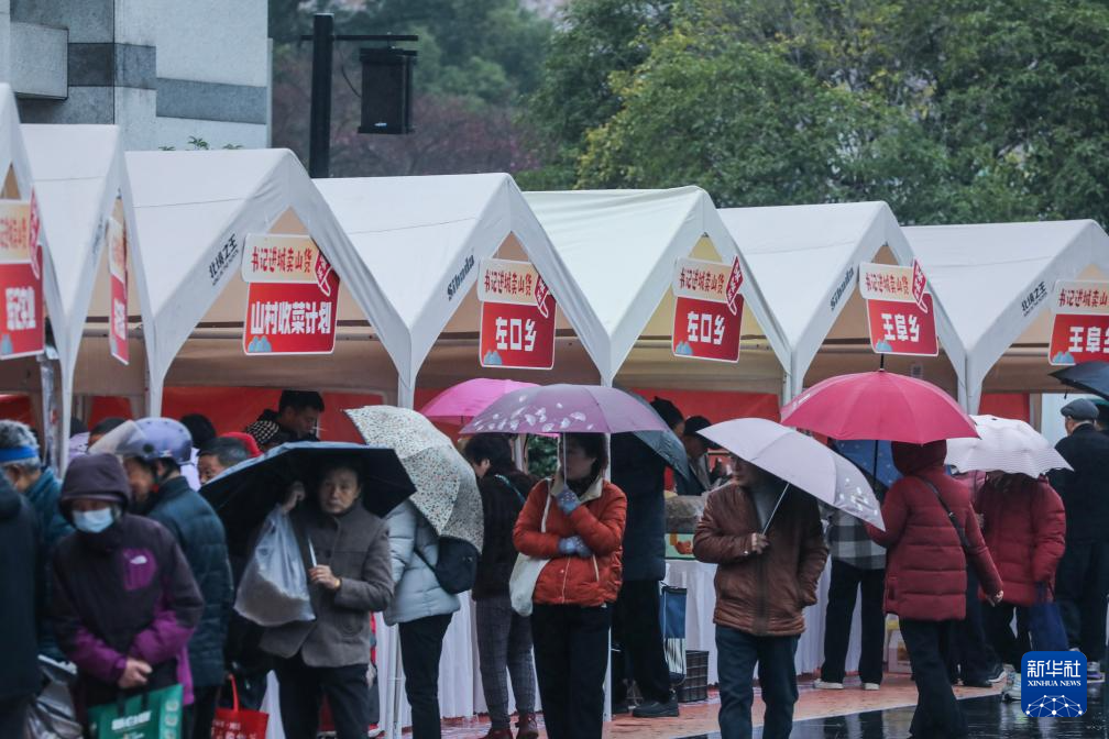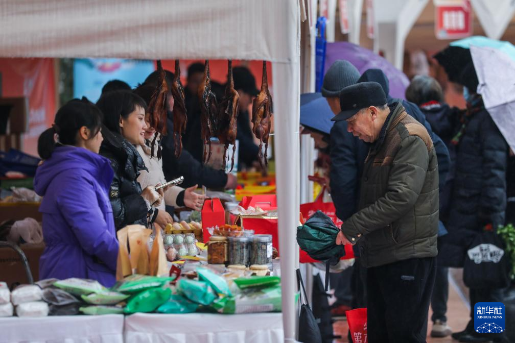 1月30日,杭州市民在千岛农品市集现场选购农产品。