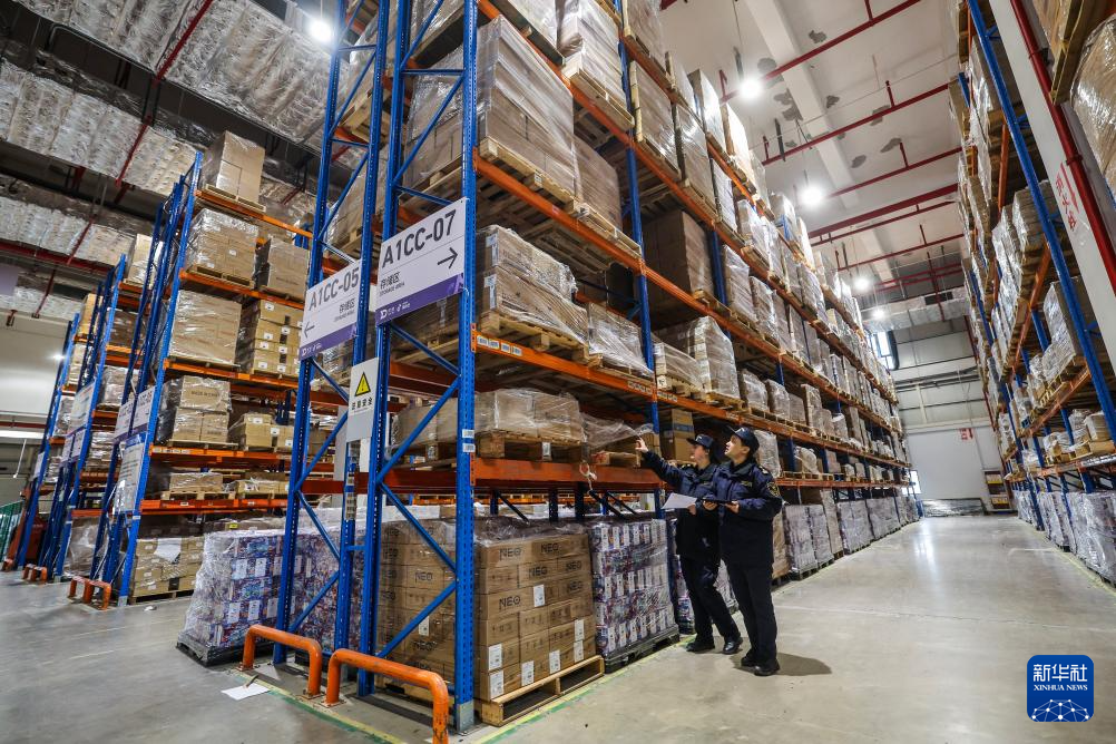 1月30日,义乌海关保税监管二科关员在义乌综保区跨境电商企业仓库对保税电商进口保健品进行入库查验。