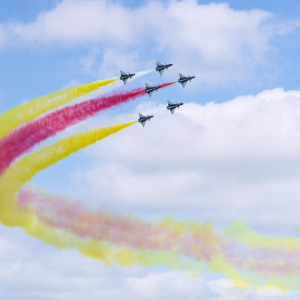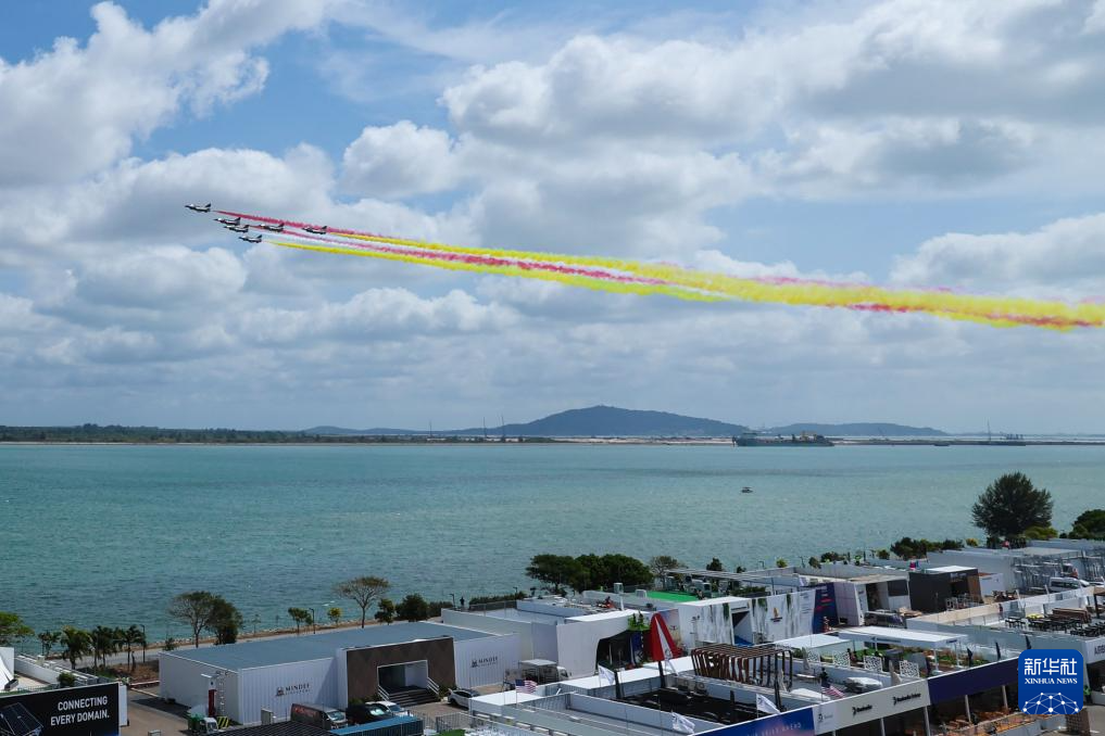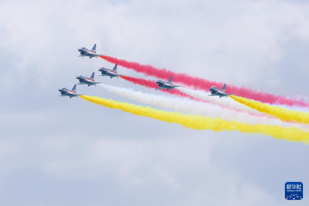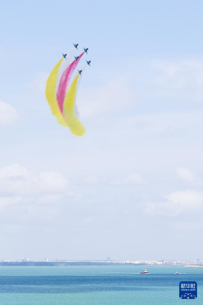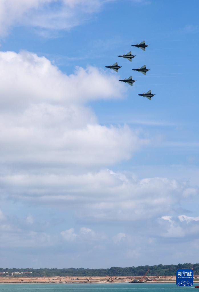 1月30日上午,中国空军八一飞行表演队在新加坡樟宜机场海面上空展开空中特技动作飞行。