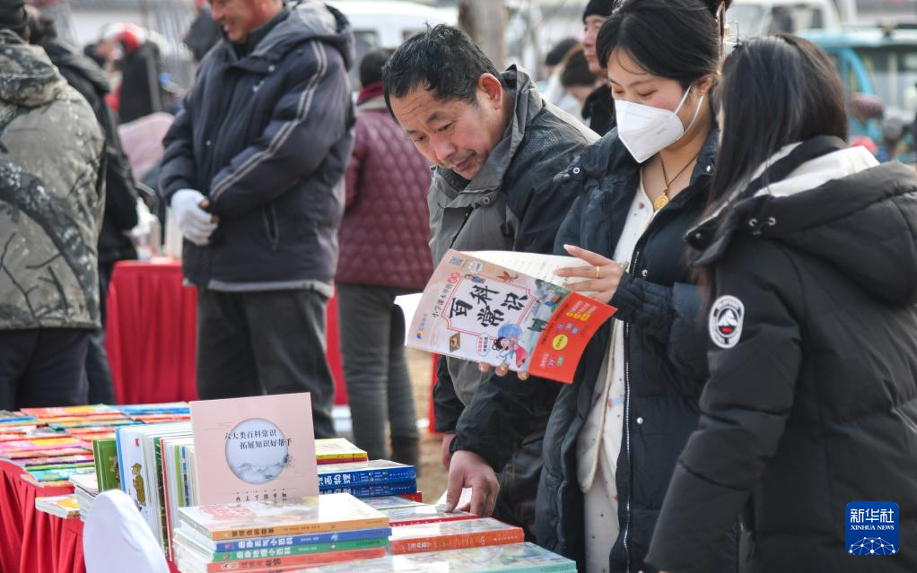 1月30日,人们在大集上挑选书籍。