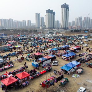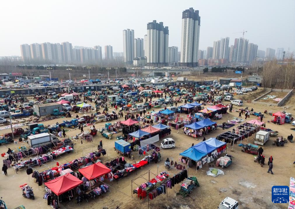 1月30日拍摄的北集坡街道大集(无人机照片)。