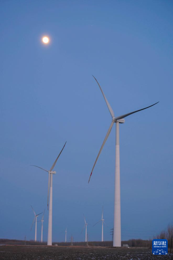 1月31日,在黑龙江省嘉荫县,雪雕与木星伴凸月相映成趣。