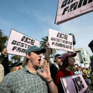 1月30日,美国多地举行示威游行活动,抗议特朗普政府暴力移民执法。活动组织者说,包括纽约和洛杉矶在内的至少300座城市举行了抗议活动。