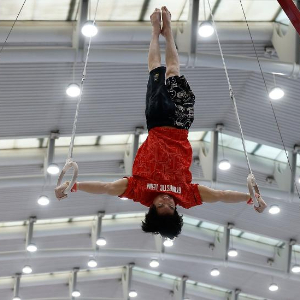 1月31日,中国国家体操队继续在国家体育总局训练局进行冬训。男队在今天举行了30米跑、400米跑和控倒立等三项的体能测试。