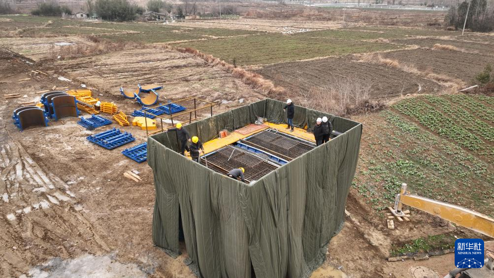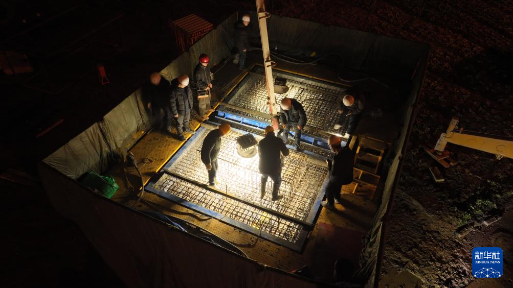 1月31日拍摄的合池铁路全线首个桥墩浇筑施工现场。