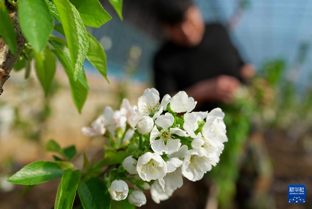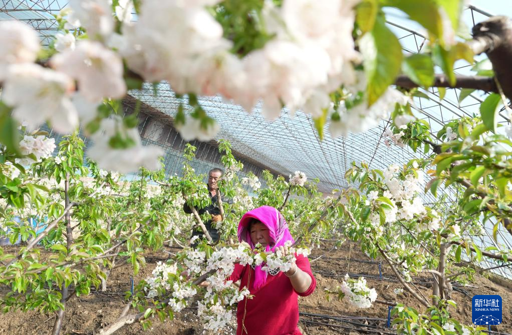河北秦皇岛:大棚樱桃花开果农忙-新华网