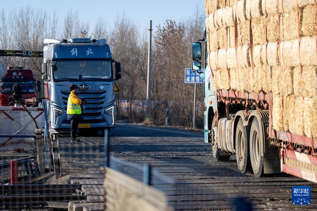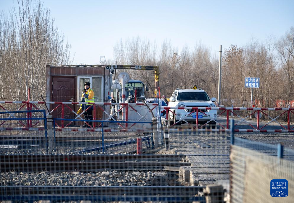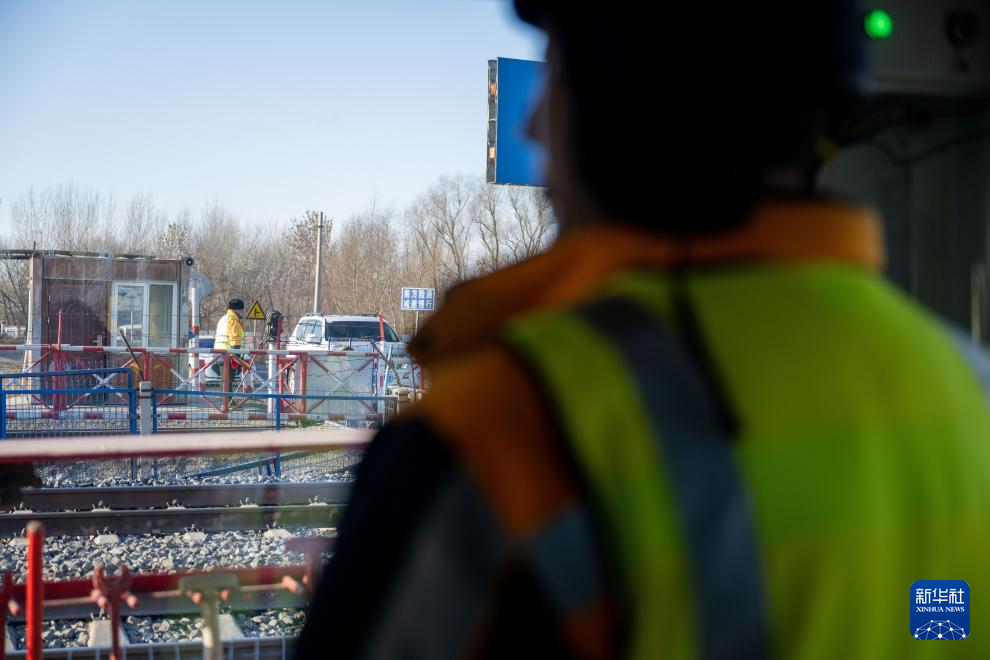 2月1日,工人张浩在道口指挥过往车辆通行。
