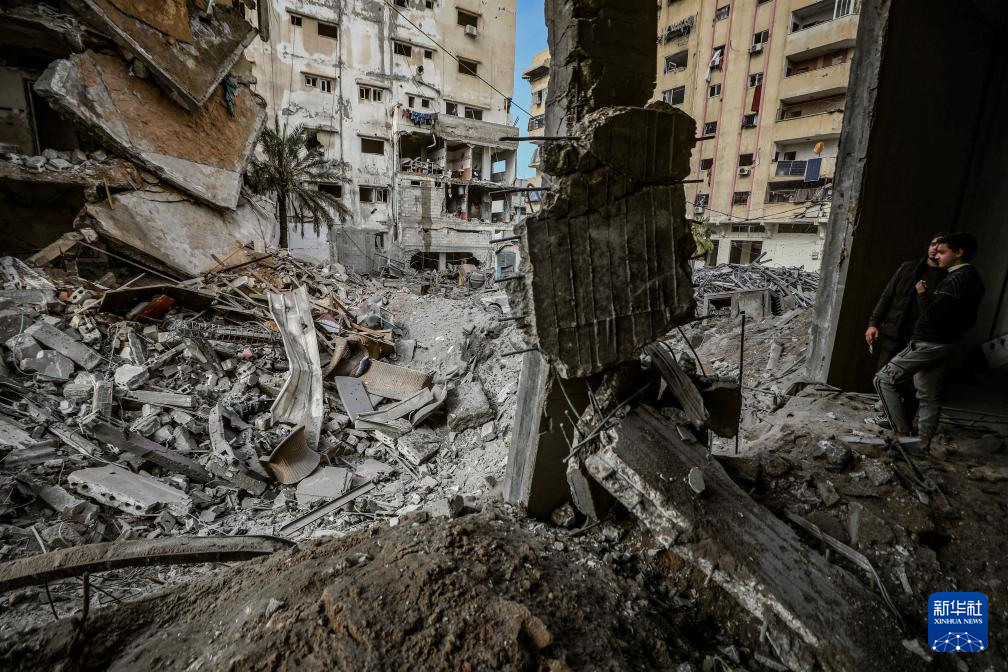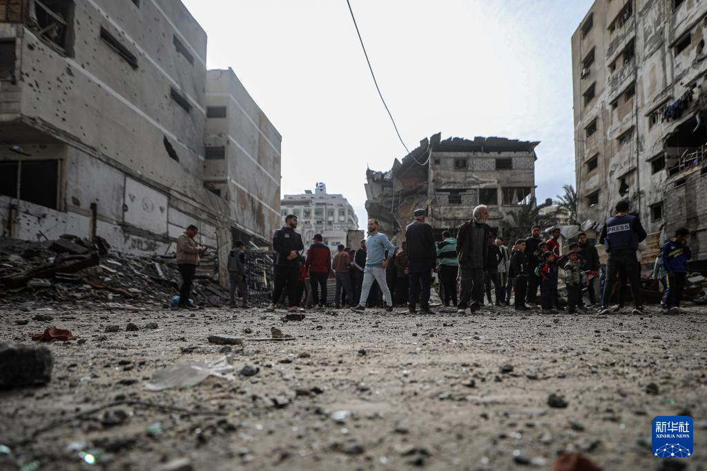 1月31日,在加沙城,民众查看以军袭击后的废墟。