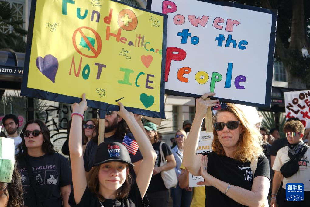 作为由“50501运动(50场抗议,50个州,1个运动)”组织的反对移民和海关执法局“全国行动日”的一部分,美国加利福尼亚州南部地区多座城市1月31日举行了示威活动。