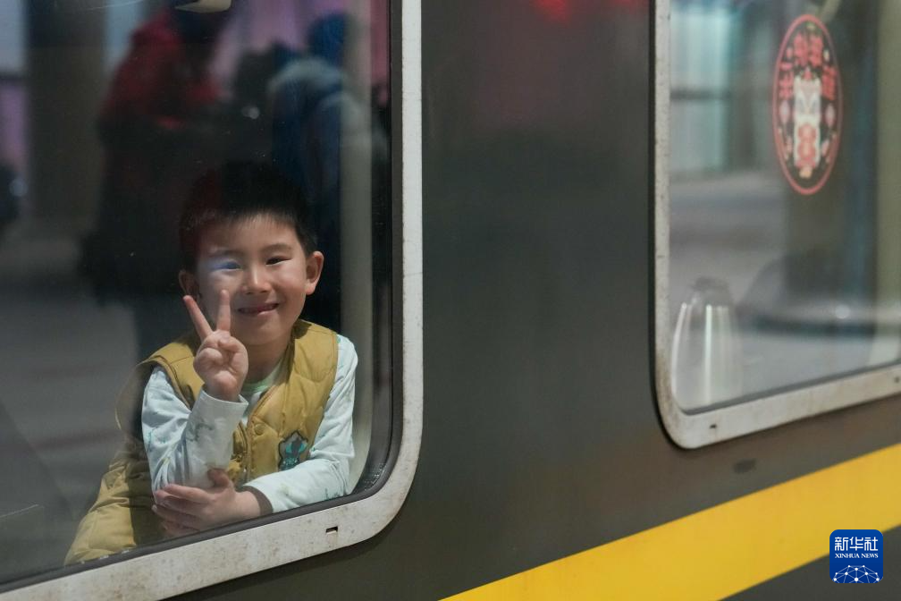 2月2日凌晨,在北京西站,一名跟随家人乘坐K4069次列车的小朋友面对镜头露出笑脸。