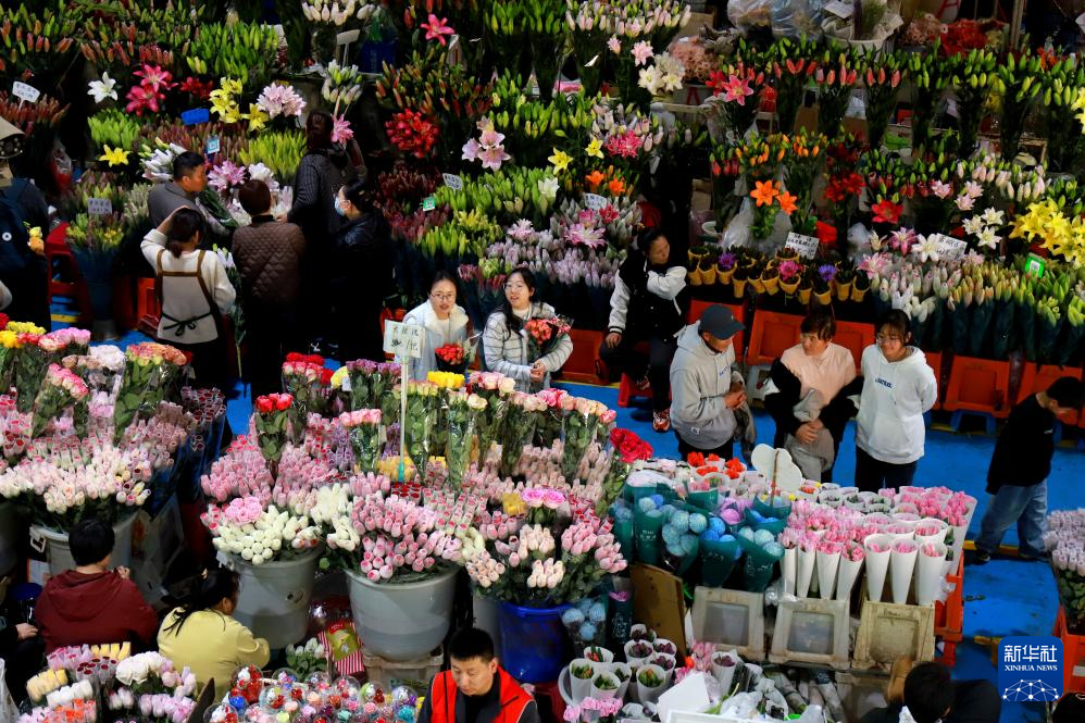 春节将至,云南省昆明市斗南花卉市场人头攒动,人们选购年宵花、鲜切花等,各类花卉销售持续走俏。