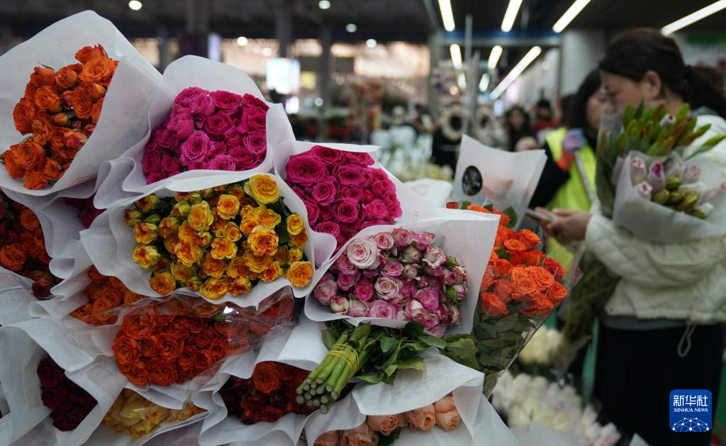 2月1日,人们在昆明的斗南花卉市场内选购鲜花。