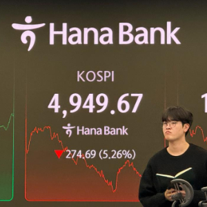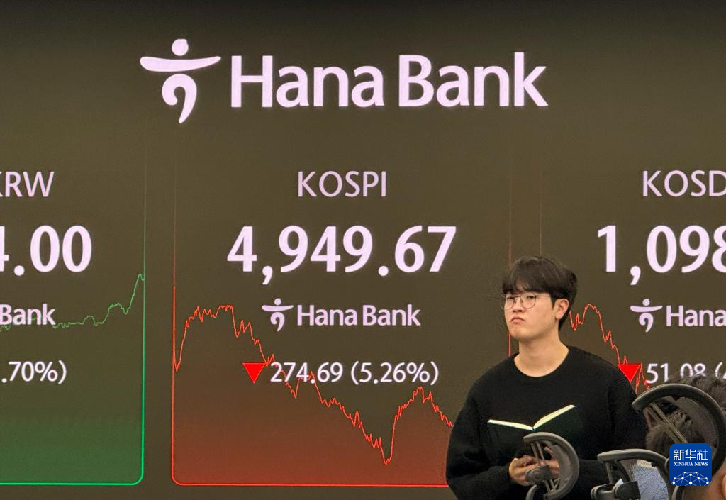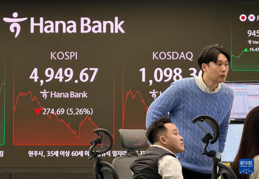 韩国股市2日遭遇重挫,韩国综合股价指数(KOSPI)收于4949.67点,比前一交易日下跌274.69点,跌幅达5.26%,一度启动暂停程序化交易的“临时停牌”措施。