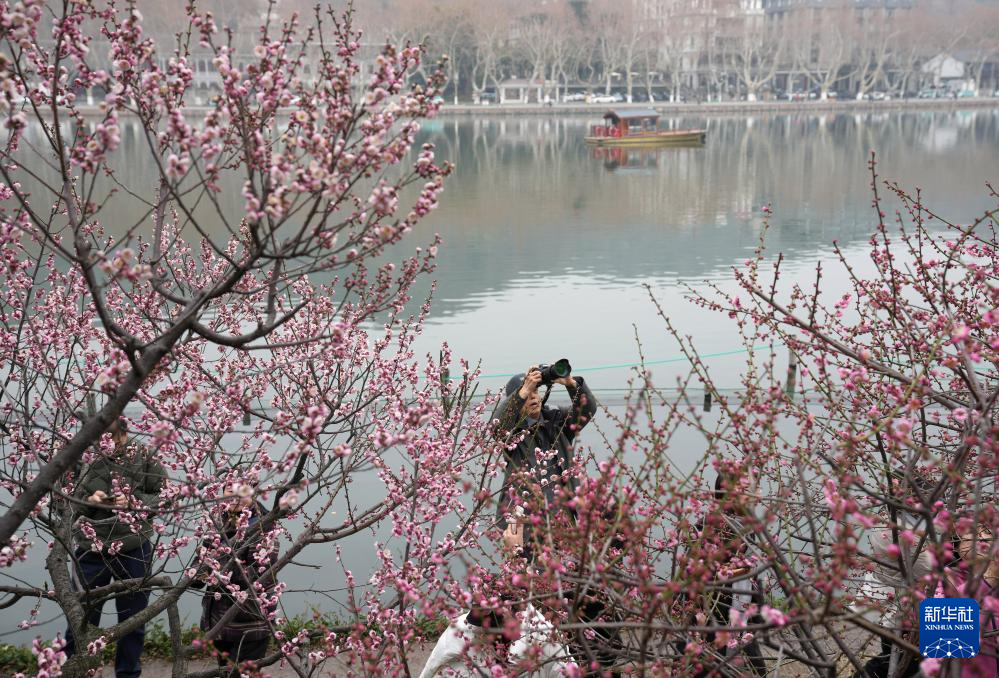 立春时节,杭州西湖景区孤山一带梅花渐次开放,吸引市民游客前来赏梅休闲。
