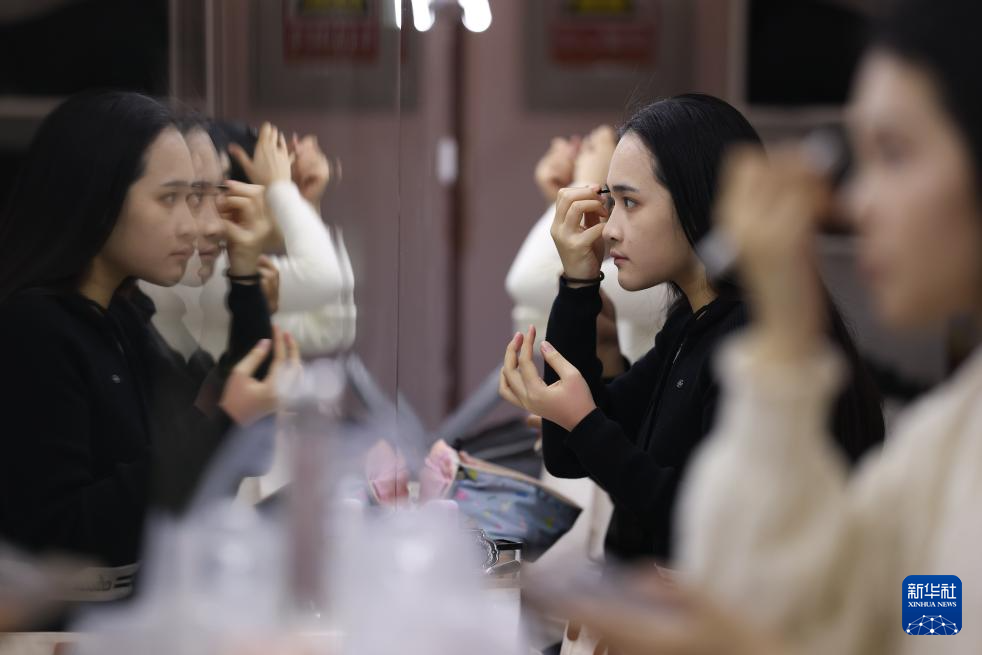 泰国学员黄雅仪在中国民航大学进行客舱乘务员形象设计训练(1月20日摄)。