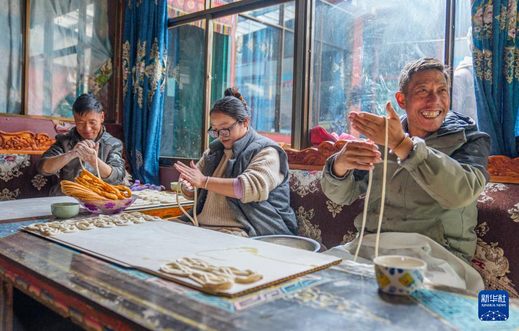 2月5日,玉麦乡村民在家里做卡塞(一种传统油炸面食),迎接即将到来的藏历新年。