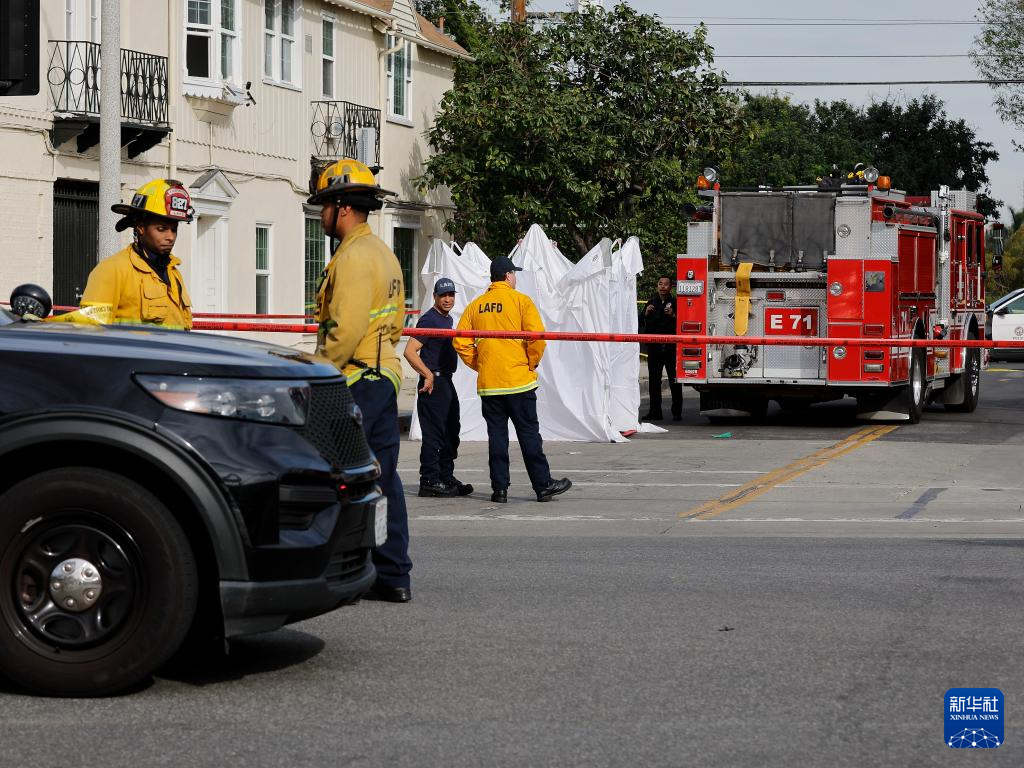 2月5日,警察和消防员在美国洛杉矶市韦斯特伍德区的事发现场工作。