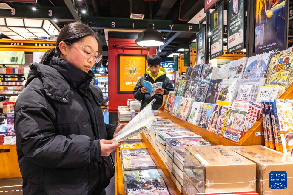 2月8日,学生在贵州省安顺市西秀区一家书店阅读。