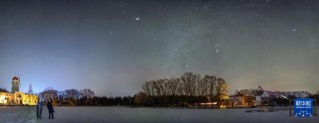 2025年12月14日在亚布力滑雪旅游度假区拍摄的星空中的“冬季大三角”和猎户座(拼接照片)。
