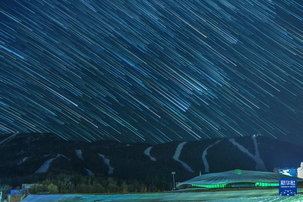 2025年12月14日在亚布力滑雪旅游度假区拍摄的双子座流星雨。