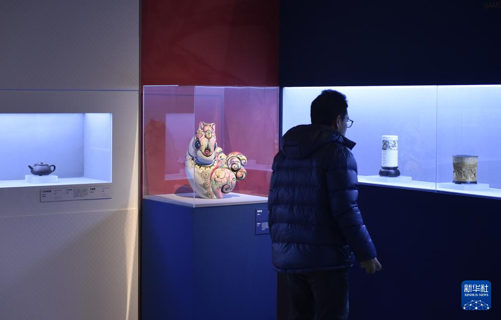 2月9日,嘉宾在中国美术馆参观展出的工艺美术作品。