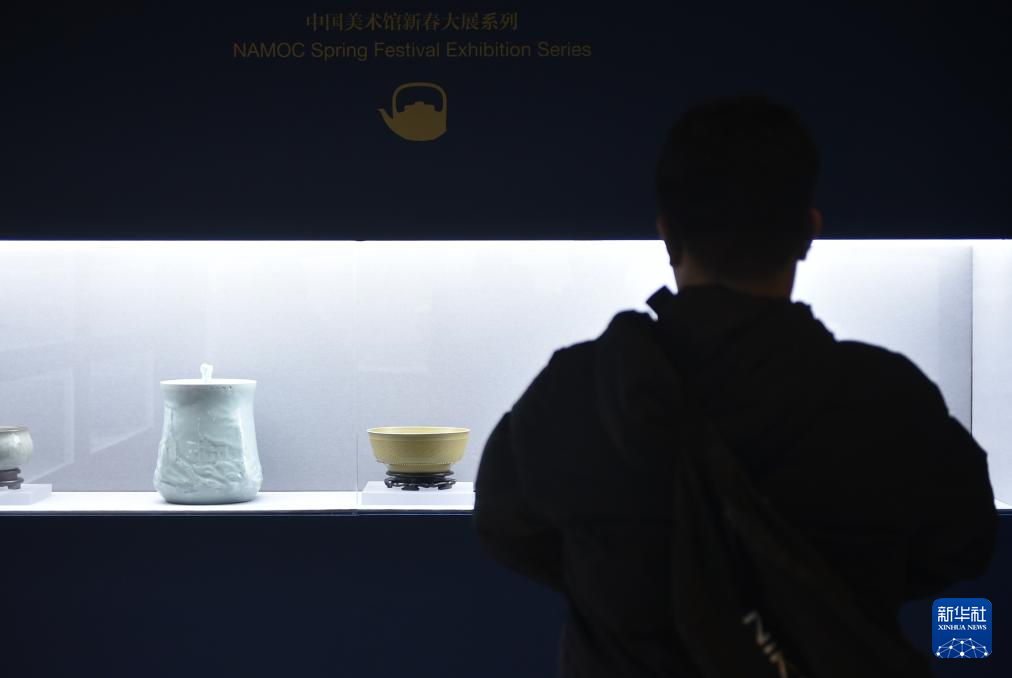 2月9日,嘉宾在中国美术馆参观展出的陶瓷作品。