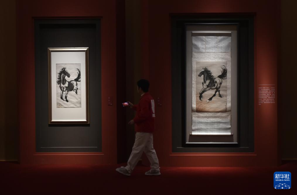 2月9日,嘉宾在中国美术馆参观展出的徐悲鸿作品《奔马》。