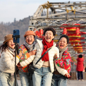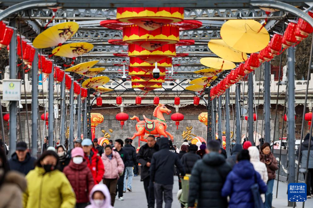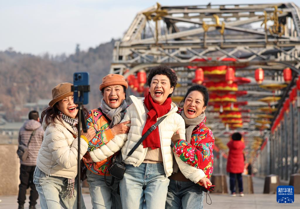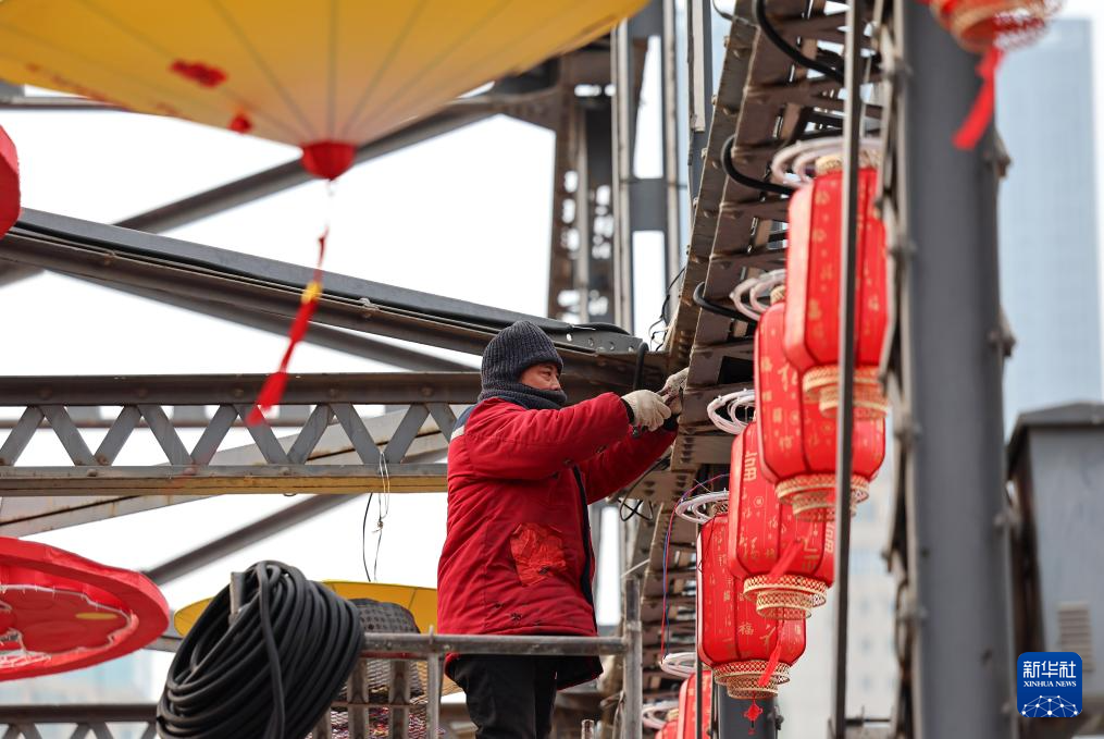新春佳节临近,有着上百年历史的甘肃兰州黄河铁桥——中山桥上挂起大红灯笼,营造出红红火火的迎新氛围。