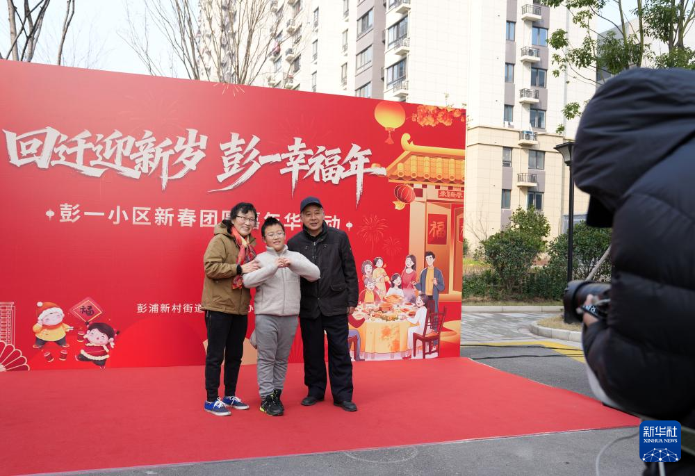2月11日,彭一小区的居民在拍“新居全家福”。
