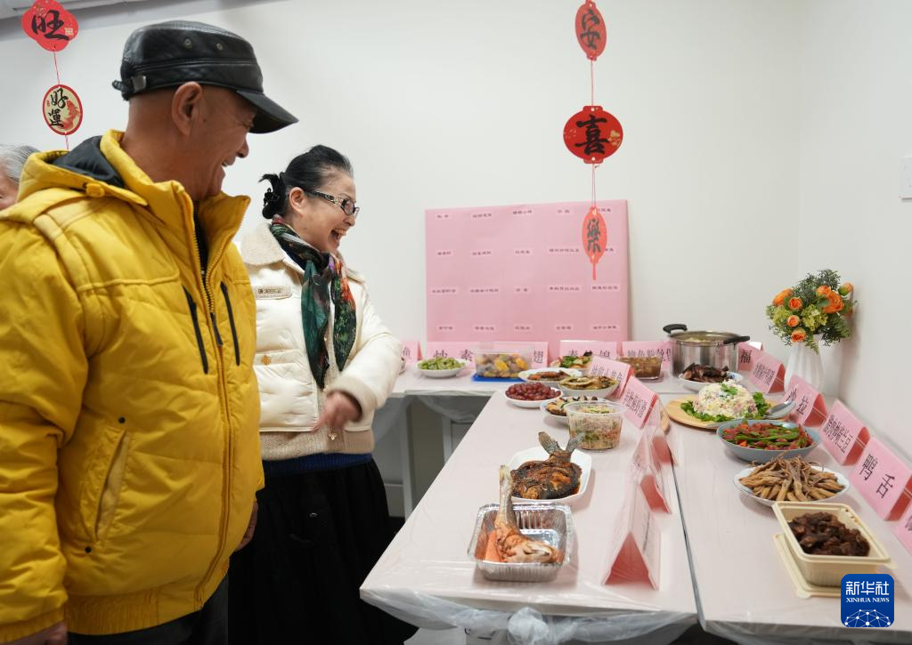 2月11日,彭一小区的居民们欣赏彼此的拿手菜。