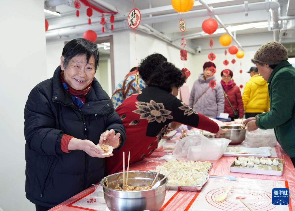 2月11日,彭一小区的居民们一起包饺子。