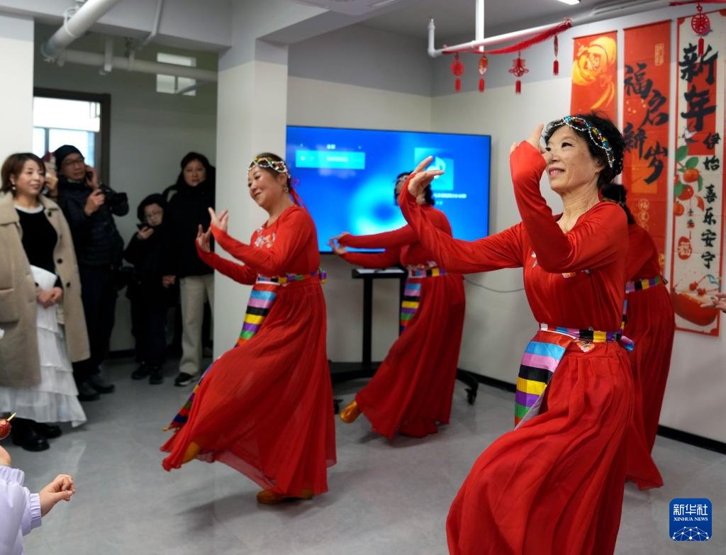 2月11日,彭一小区舞蹈队的居民为邻居们表演舞蹈。