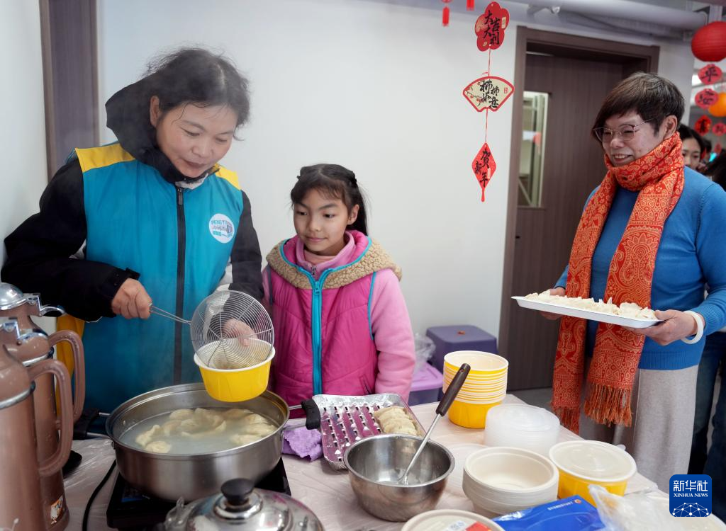 2月11日,彭一小区的居民们一起吃饺子。