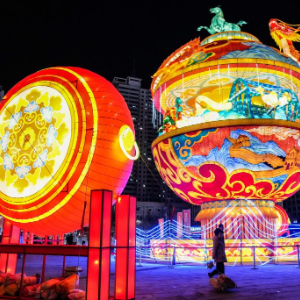 这是2月10日在兰州市城关区东方红广场拍摄的“龙马精神”主题大型灯组。