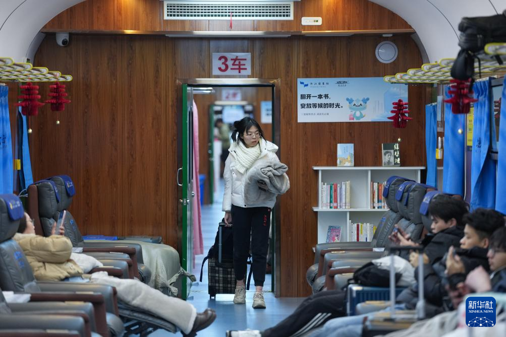 2月10日,旅客走入杭州东站“星辰守护”旅客夜间休息区寻找座位。