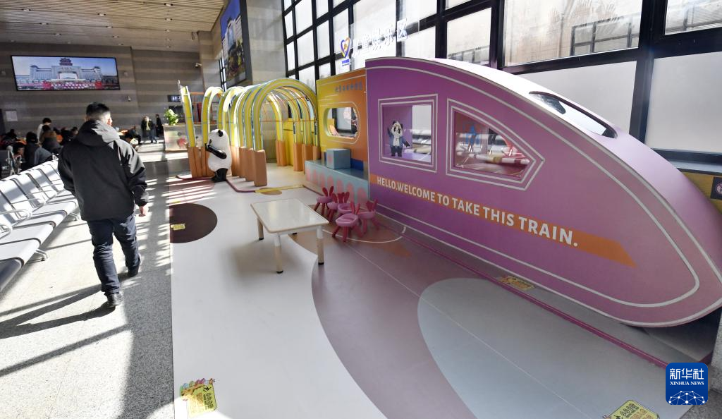 2月12日拍摄的北京西站候车大厅内的儿童候车游乐区。