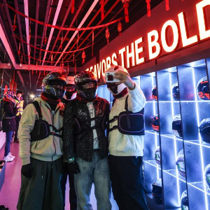 2月12日,游客在沈阳粮仓文化创意产业园准备体验室内卡丁车项目。