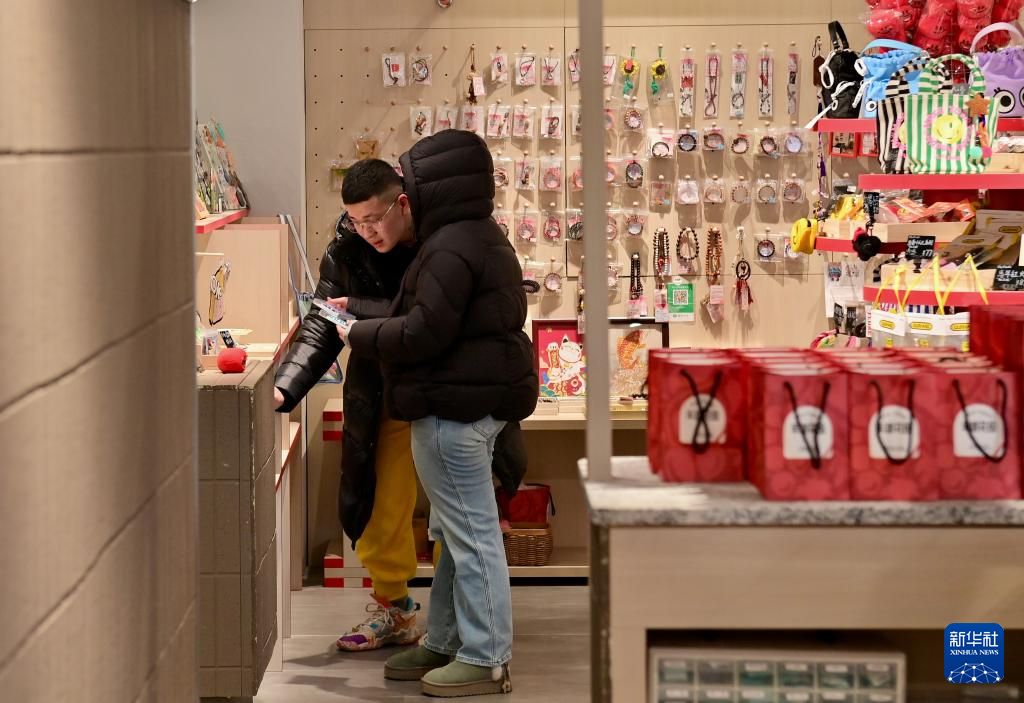 2月12日,顾客在沈阳粮仓文化创意产业园内选购文创产品。