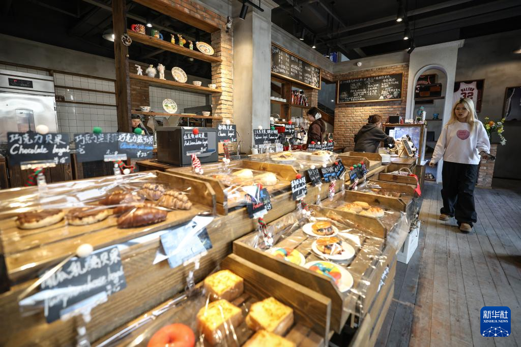 2月12日,顾客在沈阳粮仓文化创意产业园内选购烘焙商品。