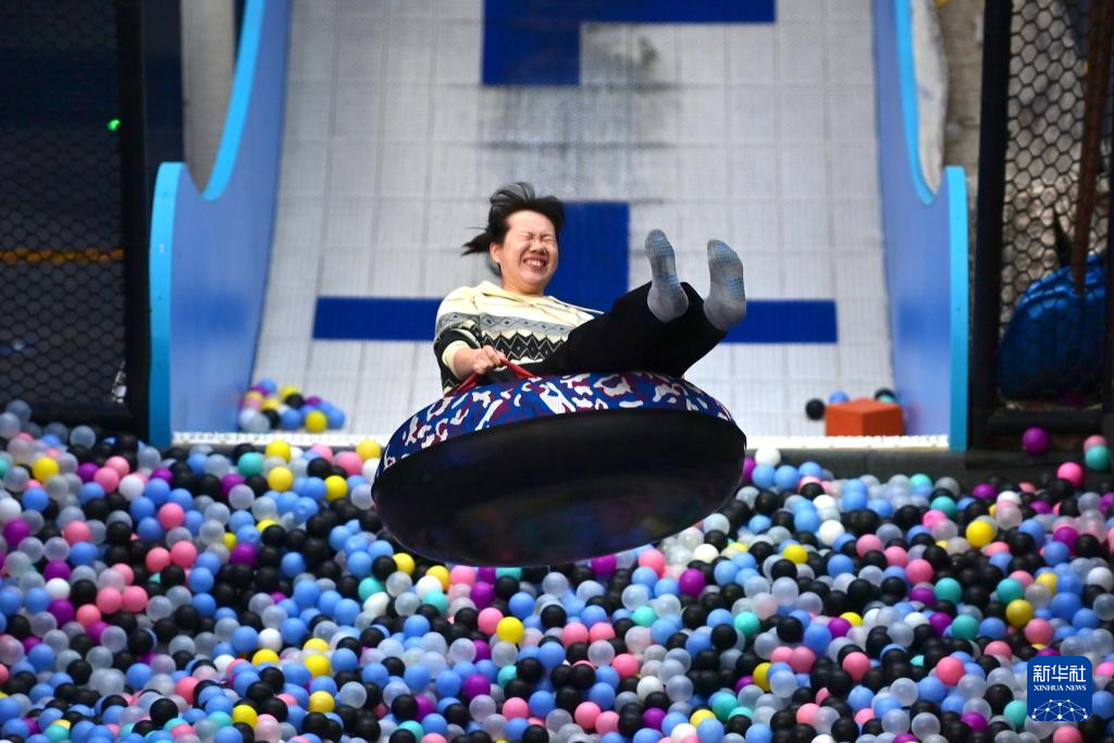 2月12日,游客在沈阳粮仓文化创意产业园内的“快乐专+”游乐场体验游乐项目。