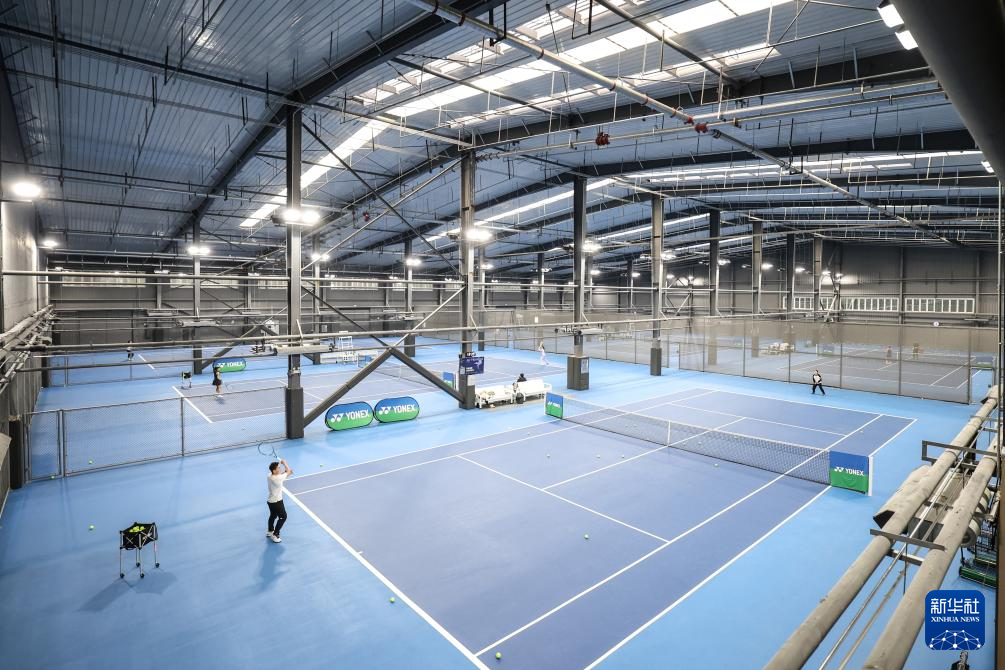 2月12日拍摄的沈阳粮仓文化创意产业园室内网球场。