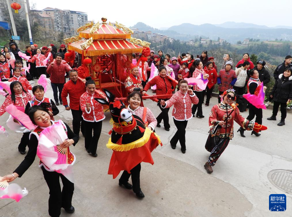 2月11日,在四川省达州市达川区堡子镇,民间艺人进行迎新春民俗表演。