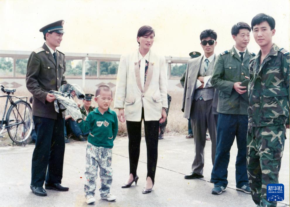 这是陈晨(左二)小时候与父母在一起(资料照片)。